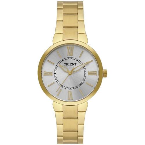 Relógio Orient Feminino Ref: Fgss0222 S3kx Casual Dourado DESCRIÇÃO DO PRODUTO: Caixa: Aço Pulseira: Aço Medida da caixa: 32MM Vidro: Cristal Mineral Alimentação do maquinário: Bateria Resistência à água: 50m Funções: Analógico, Calendário Mostrador Prateado com Algarismos Romanos Fundo Rosqueado de 1 ano Marca: Não Informado Ean: 7891529237557