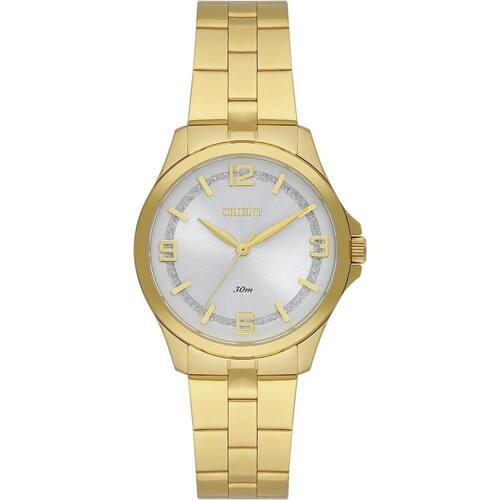 Relógio Orient Feminino Ref: Fgss0227 S2kx Casual Dourado DESCRIÇÃO DO PRODUTO: Caixa: Aço Pulseira: Aço Medida da caixa: 32MM Vidro: Cristal Mineral Alimentação do maquinário: Bateria Resistência à água: 30 m Funções: Analógico Mostrador Prateado com Brilho e Números Fundo de 1 ano Marca: Não Informado