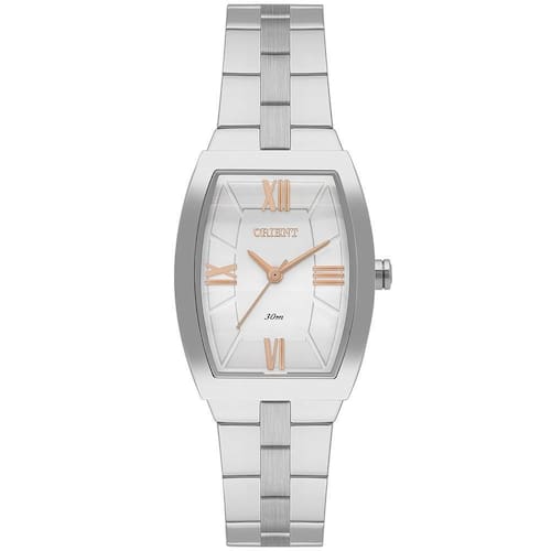 Relógio Orient Feminino Ref: Lbss0088 S3sx Retangular Prateado DESCRIÇÃO DO PRODUTO: Caixa: Aço Pulseira: Aço Medida da caixa: 25MM x 31MM Vidro: Cristal Mineral Alimentação do maquinário: Bateria Resistência à água: 30m Funções: Analógico Mostrador Prateado com Algarismos Romanos Fundo de Pressão Mecanismo Japonês