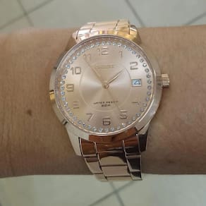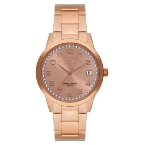 Descrição Relogio Orient feminino rose com numeros FRSS1074 R2RX Medida da caixa: 36 mm (medida sem a coroa) Medida da caixa: 38 mm (medida com a coroa) Espessura caixa: 8,9 mm Comprimento pulseira: 21 cm Peso: 85 gramas Cor da Caixa: Rose Cor da pulseira: Rose Cor do aro: Rose Cor do mostrador: Rose com strass Numeros: Sim Material da caixa: Aço Inox Material da pulseira: Aço Inox Mecanismo: Analógico Pulseira ajustavel: Sim Calendario: Sim Fundo de rosca: Sim Vidro: Cristal Mineral Máquina: Quartz (Movido a Bateria) RESISTÊNCIA A ÁGUA: 50m (5atm) Pode lavar as mãos SIM Pode tomar banho de chuveiro SIM Pode usar em piscina: SIM