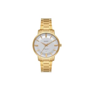 Analógico Gênero: Feminino Visor: Prata Vidro: Cristal mineral Funções: Calendário Pressão: 50m Características: com caixa em aço + IPG e pulseira em aço + IPG Diâmetro da caixa: 34 mm