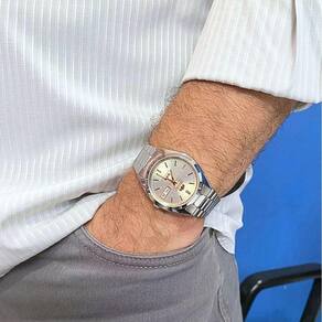 Marca: Orient Modelo: 469WA3F C1SX Tipo de relógio: Analógico Gênero: Masculino Cor da caixa: Prateado Cor da pulseira: Prateado Estilo: Casual Alarme: Não Cronômetro: Não Calendário: Sim Luz: Não – marcadores e ponteiros fluorescentes Resistência à água: Sim – Rotinas diárias Tipo de fecho: Dobrável Material da Caixa: Aço Inoxidável Material da Pulseira: Aço Inoxidável Características do vidro: Cristal mineral Tamanho da caixa: 47 mm Espessura da caixa: 12 mm Peso: 87 g Comprimento da pulseira: 22 cm Largura da pulseira: 15 mm Tampa do fundo: Rosqueado Alimentação: Automático Garantia do Fabricante: 12 meses Fabricante: Orient Relógios da Amazônia LTDA