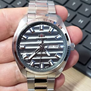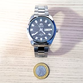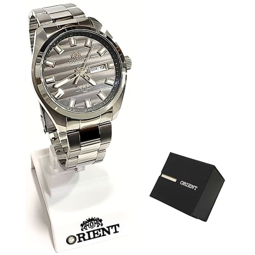 Marca: Orient Modelo: 469SS076F G1SX Tipo de relógio: Analógico Gênero: Masculino Cor da caixa: Prateado Cor da pulseira: Prateado Estilo: Casual Alarme: Não Cronômetro: Não Calendário: Sim Luz: Não – ponteiros e marcadores fluorescentes Resistência à água: Sim – 10 ATM = 100 metros Tipo de fecho: Dobrável, com trava de segurança Material da caixa: Aço Inoxidável Material da pulseira: Aço Inoxidável Características do vidro: Vidro mineral Tamanho da caixa: 44 mm Espessura da caixa: 14 mm Comprimento da pulseira: 25 cm Largura da pulseira: 20 mm Tampa do fundo: Rosqueado Peso: 130 Gramas Alimentação: Automático Garantia do Fabricante: 12 meses Fabricante: Orient Relógios da Amazônia LTDA