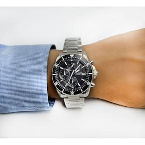 Funções do Relógio - Catraca móvel (unidirecional) - Cronógrafo - Ponteiros luminescentes - Dia do mês