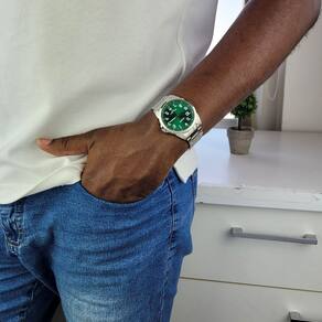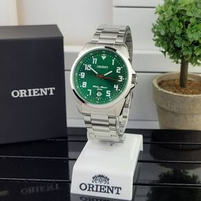 Relógio Orient masculino analógico com visual equilibrado entre elegância e uso cotidiano. A caixa redonda em aço inox prata abriga um mostrador verde de excelente leitura, com ponteiros e index na cor branca e aplicação fosforescente, permitindo visualização em ambientes com pouca luz. Equipado com mecanismo quartzo a bateria, oferece precisão e confiabilidade para a rotina. O vidro em cristal mineral protege o mostrador contra riscos leves do dia a dia, enquanto a pulseira em aço inox com fecho dobrável com botão garante ajuste firme e confortável no pulso. Um modelo versátil, indicado para quem busca estilo casual, resistência e funcionalidade em um único relógio.
