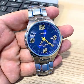 Marca: Orient Modelo: MBSS1385 D2SX Tipo de relógio: Analógico Gênero: Masculino Cor da caixa: Prateado Cor da pulseira: Prateado Estilo: Casual Alarme: Não Cronômetro: Não Calendário: Sim Luz: Não Resistência à água: Sim – 5 ATM = 50 metros Tipo de fecho: Dobrável, com trava lateral e trava de segurança Material da caixa: Aço Inoxidável Material da pulseira: Aço Inoxidável Características do vidro: Vidro mineral Tamanho da caixa (A x L): 49,3 × 45 mm Espessura da caixa: 10,4 mm Comprimento da pulseira: 26 cm Largura da pulseira: 22 mm Tampa do fundo: Rosqueado Peso: 157 Gramas Alimentação: Bateria Garantia do Fabricante: 12 meses Fabricante: Orient Relógios da Amazônia LTDA