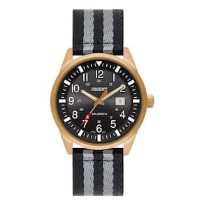 Caixa: Aço inoxidável Pulseira: Aço inoxidável + pulseira adicional em nylon Pulseira: largura de 22 mm Peso: 112 gramas Mostrador: Preto Caixa: 9.9 mm espessura Caixa: 41.6 mm diâmetro Caixa: L2L de 47.7 mm Movimento: Solar Precisão: 15 segundos por mês Reserva de energia: 4 meses Funções: Hora, calendário dia do mês Vidro: Cristal Mineral Fundo: rosqueado resistência á água de até 50 metros Coroa: Simples Informações adicionais: ponteiros de hora e minutos com luminosidade Garantia: 1 ano pelo fabricante Ean: 7891529992562