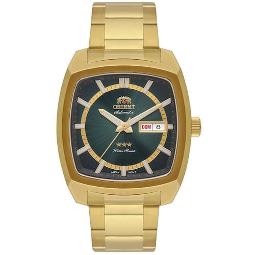 Relógio Orient Masculino Ref: F49Gg031 E1Kx Automático O Relógio Orient Masculino Ref: F49Gg031 E1Kx Automático é perfeito para homens que valorizam qualidade, estilo e funcionalidade. Com um design retangular dourado, ele se destaca por sua elegância e sofisticação. Esse relógio faz parte da linha Orient Automatic Três Estrelas, garantindo sua confiabilidade e precisão. Seu vidro é feito de cristal mineral, proporcionando resistência e durabilidade. Além disso, o Relógio Orient Masculino Ref: F49Gg031 E1Kx Automático possui diversas funções, como automático, analógico e calendário mensal. Ele também possui um calendário semanal com opção em português e inglês, facilitando o seu dia a dia. Com resistência à água de até 50 metros, você pode usá-lo tranquilamente em atividades do dia a dia, como lavar as mãos ou tomar chuva leve. Esse relógio possui uma caixa e pulseira feitas em aço inoxidável, garantindo maior durabilidade e resistência. Seu diâmetro de caixa é de 4,1 cm x 4,1 cm, proporcionando um tamanho ideal para o pulso masculino. O Relógio Orient Masculino Ref: F49Gg031 E1Kx Automático é movido por um maquinário mecânico automático, garantindo um funcionamento perfeito e preciso. Seu mostrador é verde, dando um toque de estilo único ao relógio. Além disso, possui fundo parafusado, garantindo maior segurança e proteção. Com de 1 ano, você pode adquirir o Relógio Orient Masculino Ref: F49Gg031 E1Kx Automático com tranquilidade, sabendo que está adquirindo um produto de qualidade e confiança. Adquira agora mesmo o Relógio Orient Masculino Ref: F49Gg031 E1Kx Automático e tenha um acessório elegante e funcional para o seu dia a dia. Marca: Não Informado