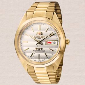 Ficha técnica Marca: Orient Modelo: 469WC2NH B1KX Mecanismo: Automático Material da caixa: Aço inoxidável dourado Material da pulseira: Aço inoxidável dourado Resistência à água: Não informado Tipo de vidro: Não informado Formato: Redondo Gênero: Masculino Estilo: Clássico Funções: Horas, minutos, segundos, calendário (dia e data)
