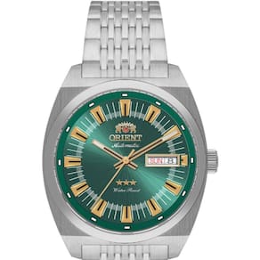 Especificações Técnicas:Marca: OrientReferência: YN6SS018 E1SXGênero: MasculinoCor da Pulseira: PrataCor da Caixa: PrataMaterial da Pulseira: Aço InoxidávelMaterial da Caixa: Aço InoxidávelTamanho da Caixa: 40 mmResistência à água: 10 ATMTipo de Movimento: Automático (Calibre YN6 – 21 rubis, reserva de marcha de 40 horas, função hacking)Vidro: Cristal de Safira