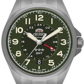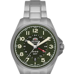 Especificações Técnicas:Marca: OrientReferência: NH3SS017 E2SXGênero: MasculinoCor da Pulseira: PrataCor da Caixa: PrataMaterial da Pulseira: Aço InoxidávelMaterial da Caixa: Aço InoxidávelTamanho da Caixa: 40 mmResistência à água: 10 ATM (100 metros)Tipo de movimento: Automático (Calibre NH34 – GMT)Características do vidro: Cristal de Safira