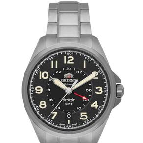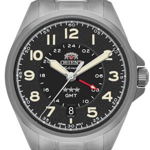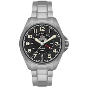Especificações Técnicas: Marca: Orient Referência: NH3SS017 P2SX Gênero: Masculino Cor da Pulseira: Prata Cor da Caixa: Prata Material da Pulseira: Aço Inoxidável Material da Caixa: Aço Inoxidável Tamanho da Caixa: 40 mm Resistência à água: 10 ATM (100 metros) Tipo de movimento: Automático (Calibre NH34 – GMT) Características do vidro: Cristal de Safira