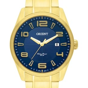 CARACTERÍSTICAS DETALHADAS DO PRODUTO:• Marca: ORIENT• Modelo: Analógico• Gênero: Masculino• Composição do Vidro: Cristal Mineral• Material da Caixa: Aço• Cor da Caixa: Dourada• Material da Pulseira: Aço• Cor da Pulseira: Dourada• Cor do Mostrador: Azul Escuro• Calendário: Dia do MêsMEDIDAS DO RELÓGIO:Espessura Caixa: 9.8mmDiâmetro Caixa: 47.5mmDiâmetro Visor: 39.5mmLargura Pulseira: 22mmLargura Pulseira Base: 26.8mmCircunferência da Pulseira: 20cmCircunferência Pulseira com a Caixa: 25.5cmPeso sem a Embalagem: 148gFundo do Relógio: RoscaRESISTÊNCIA À ÁGUA:• WR: 50 Metros• Pode Lavar as Mãos: Sim• Pode Usar em Água Corrente: Sim• Pode Usar na Piscina: Sim (Superficial)• Pode Usar em Mergulho Profissional: Não