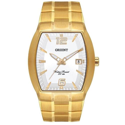 Marca: ORIENT Modelo: GGSS1017 S2KX Categoria: Masculino Coleção / Linha: Sport Tamanho: Grande Funções : - Analógico - Calendário dia do Mês Características - Sistema de energia : Bateria - Coroa: Simples - Tampa posterior : Pressão - Resistência à água : 50M - Vidro : Cristal mineral - Mostrador: Champanhe - Material da caixa : Aço Dourado Quadrado - Material da pulseira : Aço Dourado Medidas - Diâmetro da caixa : 4,2 cm - Diâmetro do visor : 3 cm - Espessura da caixa : 1 cm