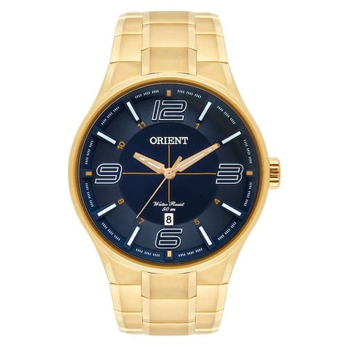 O Relógio Orient Masculino MGSS1136 D2KX é a escolha ideal para homens que valorizam estilo, elegância e durabilidade em um só acessório. Seu design marcante une o acabamento dourado da caixa e pulseira de aço inoxidável com o mostrador azul profundo, criando um contraste sofisticado que transmite imponência e personalidade.