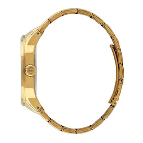 Outro destaque é a resistência à água de 50 metros, que permite enfrentar a rotina sem preocupações, inclusive em momentos de contato com respingos e pequenas imersões. A pulseira de aço dourado possui fecho dobrável com trava de segurança, proporcionando conforto e firmeza durante o uso.