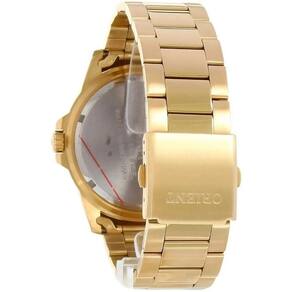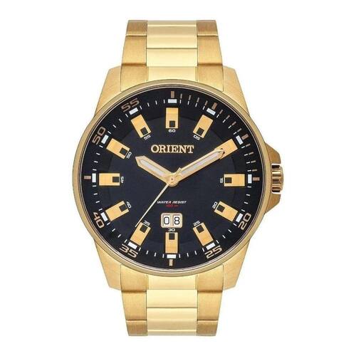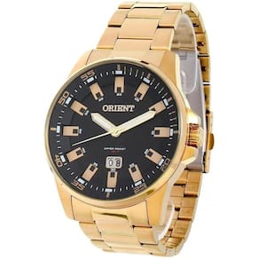 Relógio Orient Masculino Mgss1218 P1kx Preto DouradoRelógio ORIENTModelo: MGSS1218 P1kxGenero: MasculinoTamanho: Grande Funções - Analógico- Calendário dia do mês Características - Analógico / Quartz- Coroa: Simples- Tampa posterior : Rosqueada- Resistência à água : 100m- Vidro : Cristal Mineral- Mostrador Preto com detalhes dourado- Material da caixa : Aço Dourado- Material da pulseira : Aço Dourado Medidas - Diâmetro da caixa : 4,5 cm- Diâmetro do visor : 3,8 cm- Espessura da caixa : 0,8 cm- Largura da pulseira: 2,4 cm Acompanha- Manual- Nota Fiscal- Embalagem- Garantia de 1 ano