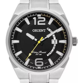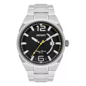 Relógio Orient informações Básicas- Marca: Orient- Referência: MBSS1336.P2SX- Gênero: Masculino- Garantia: 1 Ano diretamente com o fabricante Funções:- Analógico- CalendárioCaracterísticas- Composição do Vidro: Cristal mineral- Material da Caixa: Aço Inoxidável- Cor da Caixa: Prata- Material da pulseira: Aço Inoxidável- Cor da Pulseira: Prata-Mostrador: Preto com detalhe amarelo Medidas- Diâmetro da caixa : 4,4 cm- Espessura da Caixa: 0,9 cm Resistência a Água: 5 ATM ( 50 Metros )- Pode Lavar as Mãos: SIM- Pode Usar em Água Corrente: Não- Pode Usar na Piscina: Não- Pode Usar em Mergulho Profundo: NÃO