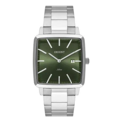 DescriçãoVidro: Cristal Mineral Funções: Calendario, Analógico Resistencia à água: 30 M Características: com caixa Aço inoxidável e pulseira Aço inoxidável Diâmetro da caixa: 3,7 cm x 3,7 cm Alimentação do Maquinário: Bateria Mostrador Verde Militar Fundo de PressãoGarantia de 1 ano