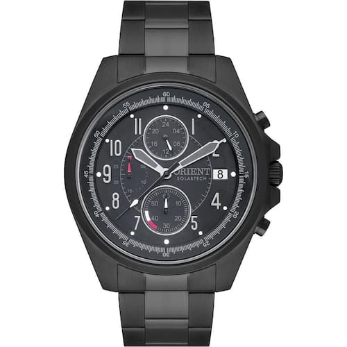 Relógio orient masculino ref: mpssc034 p2px solar cronógrafo black Descrição do produto: Vidro: cristal mineral Funções: calendario, analógico, solar, cronógrafo Resistencia à água: 100 m Características: com caixa aço inoxidável e pulseira aço inoxidável Diâmetro da caixa: 4,5 cm Alimentação do maquinário: energia solar Mostrador preto com número e detalhes em vermelho Fundo rosqueado Linha: orient solartech de 1 ano