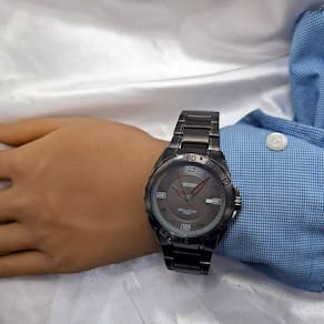 Características: com caixa Aço inoxidável e pulseira Aço inoxidável