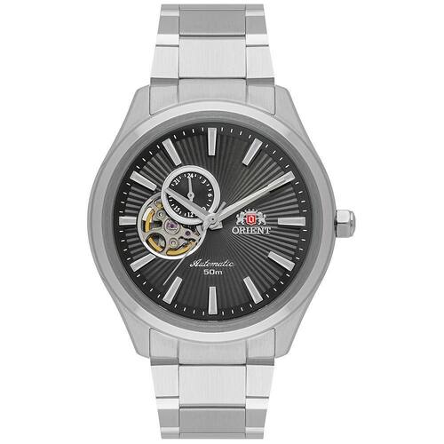 Linha: orient automatic Vidro: cristal mineral Funções: automático, semiesqueleto espelho mágico Resistência à água: 50 m Características: com caixa aço inoxidável e pulseira aço inoxidável Diâmetro da caixa: 4,3 cm Alimentação do maquinário: mecânico automático