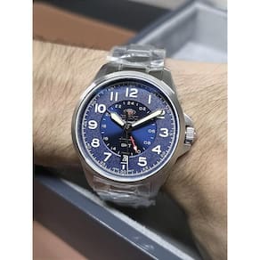 funções: Automático, Analógico, Calendário Mensal, Hacking (Ponteiro de segundos para no modo de acerto de horas), Enrolamento manual (Premite dar corda diretamente na coroa), Reserva de Marcha de 40h, GMT