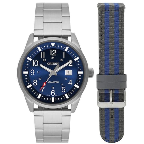 Relogio orient masculino solar prata azul troca pulseira A luz como energia: O relógio solartech alia tecnologia e sustentabilidade. Com autonomia aproximada de quatro meses, o mecanismo solar transforma todas as luzes em energia para o seu funcionamento. Isso evita o descarte da bateria no meio ambiente. Medidas: - diâmetro da caixa: 42 mm medida sem a coroa - diâmetro da caixa: 45 mm medida com a coroa - espessura da caixa: 11,7 mm - comprimento da pulseira: 22 cm Características: Material da caixa: aço inox antialérgico Material da pulseira: uma em aço inox e uma em nylon Modelo dotado com o quick release system que dispensa uso de ferramentas para trocas das pulseiras. troca fácil Cor do aro: prata Cor da caixa: prata Cor do mostrador: azul Calendario: sim Mecanismo: analógico Vidro: cristal mineral Máquina: solar tech orient movido a luz solar ou luz ambiente Resistência à água: - wr: 100 metros 10atm - pode lavar as mãos: sim - pode usar na piscina: sim - pode usar em mergulho profundo: não - : 12 meses em toda a rede de assistências orient no brasil Fabricante: orient relógios da amazônia ltda Acompanha: Relógio Pulseira de nylon Caixinha orient Certificado de