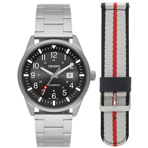 Relogio orient masculino solar prata preto troca pulseira
