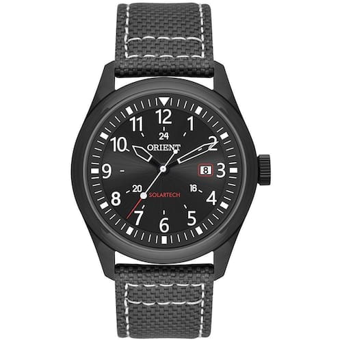 Cor do aro: preto Cor da caixa: preto Cor do mostrador: preto Calendario: sim Mecanismo: analógico Vidro: cristal mineral Máquina: solar tech orient movido a luz solar ou luz ambiente