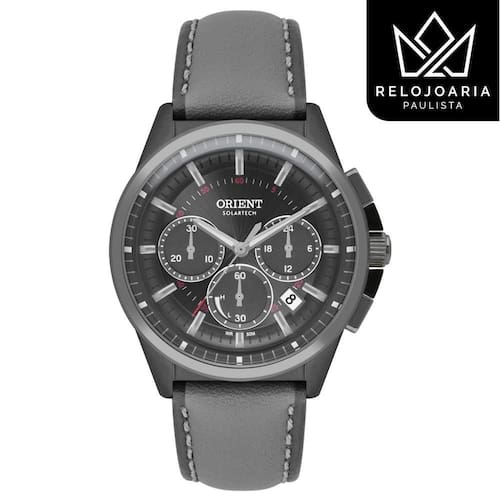 Relógio Orient Masculino Solartech Cinza MYSCC009 G1GX Relógio Orient masculino, analógico, cronógrafo da linha Solartech. Caixa de aço na cor Cinza. Visor cinza e função data. Marcadores de hora e ponteiros luminescentes. Resistência à água até 50 metros. A Coleção Solartech é composta por relógios que se recarregaram por qualquer luz, seja solar ou luz artificial. Tamanho grande 4,3 cm . Orient Solartech Myscc009-g1gx Analógico Movimento: Quartz Gênero: Masculino Visor: Cinza Vidro: Cristal mineral curvo Diâmetro da caixa: 43 mm Altura da caixa: 12 mm Pressão: 50M Fundo: Rosqueado Peso: 81 g Características: Caixa em aço + IPBLACK e pulseira em couro cinza. Fecho de Fivela. Funções: Calendário data , Cronógrafo e indicador 24h. Solartech: o relógio utiliza um sistema que absorve os raios solares e luzes ambientes para carregar sua bateria. Com autonomia aproximada de 4 meses. Atenção: não guardar o relógio em lugares escuros como caixas, gavetas ou armários por muito tempo. : 1 ano obrigatória a ativação via QR Code na etiqueta do relógio . Acompanha caixa da marca, manual de instruções e certificado de . Marca: Não Informado