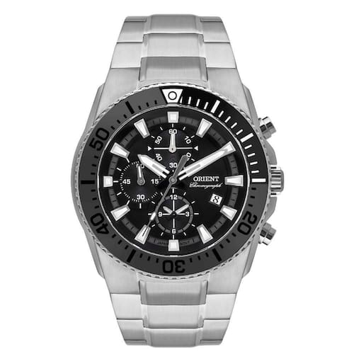 O bisel com marcações de tempo reforça o caráter esportivo do relógio, enquanto a pulseira em aço inoxidável prateado oferece construção sólida, conforto e encaixe seguro no pulso. O conjunto garante durabilidade e presença marcante, características tradicionais da linha esportiva da Orient.