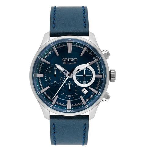 Caixa: Aço Pulseira: Couro Azul Mostrador: Azulado Função: Calendário e Cronógrafo Resistência: 5 ATM Visor em Cristal Mineral Movimento Quartz Tamanho da Caixa: 44 mm Espessura da Caixa: 12 mm Tamanho da Pulseira: 22 mm Fecho fivela