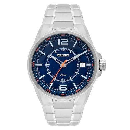 - Material da pulseira: Aço inoxidável; - Vidro: Cristal mineral; Fundo: Rosca; - Material da caixa: Aço inoxidável; - Máquina: Analógica à Bateria com funcionamento Quartzo; - Peso: 165 gramas; - À prova d'água: Resiste até 5 ATM de pressão; - Algumas partes brancas internas do relógio com efeito fosforescente (emite luz por um tempo no escuro após receber luz de outra fonte). Dimensões do modelo seguindo o esquema que está nas fotos do anúncio: - Espessura Caixa: 11 mm ( 1,1 cm); - Diâmetro Caixa: 45 mm ( 4,5 cm); - Diâmetro Visor: 39 mm ( 3,9 cm); - Comprimento Vertical: 52 mm ( 5,2 cm); - Comprimento Horizontal (c/ coroa): 49 mm ( 4,9 cm); - Largura Pulseira: 22 mm ( 2,2 cm); - Largura Pulseira Base: 28 mm ( 2,8 cm).