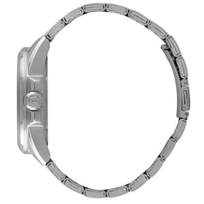 Vidro: Cristal Mineral Mostrador: Analógico Cor do Mostrador: Preto com detalhes em Azul Pulseira: Aço Inoxidável Caixa: Aço Inoxidável Fecho: Dobrável com botão Formato da Caixa: Redondo Tampa do Fundo: Rosqueada MEDIDAS Diâmetro da Caixa: 4,6 cm Espessura: 1,2 cm Comprimento pulseira: 26 cm RESISTÊNCIA À ÁGUA Resistente à Água: 50 M / 5 atm