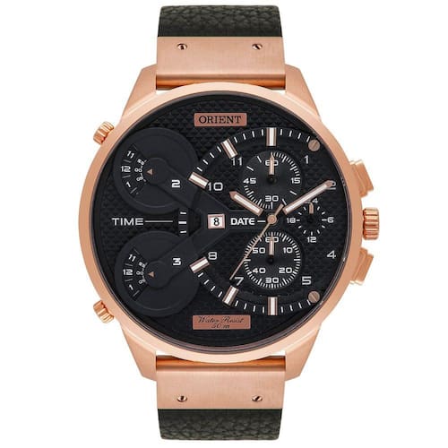 Características: com caixa Aço + IPRG e pulseira em Couro