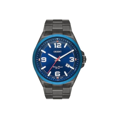 Características: com caixa em aço + IP Blue e pulseira em aço + IP Black