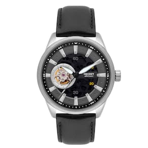 características: com caixa Aço inoxidável e pulseira Couro autêntico Preta