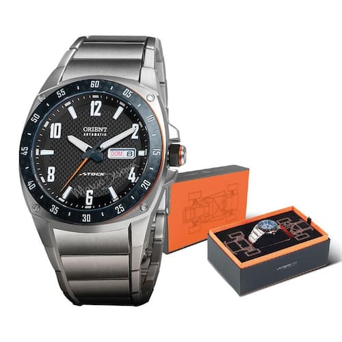 Desempenho e Tecnologia dos Carros de Competição A Orient Relógios é reconhecida mundialmente por sua excelência, com mais de 70 anos de história e uma constante busca por inovação e performance. Inspirada pelo universo do automobilismo, a coleção Speedtech combina tecnologia avançada e design dos carros de competição com a precisão e o alto desempenho característicos dos relógios Orient. Os relógios automáticos desta edição especial foram projetados com base em tecnologias de motores turbo, conhecidos por sua eficiência. Eles geram energia através do movimento do pulso, dispensando o uso de baterias. Além disso, a coleção conta com o mecanismo Solartech, que converte luz em energia, garantindo um funcionamento sustentável. Produzidos com materiais de alta performance, como titânio na caixa e na pulseira principal, e fibra de carbono no aro e no mostrador, os relógios proporcionam leveza, resistência e um visual esportivo. O vidro de cristal de safira oferece máxima nitidez e proteção contra arranhões. Para maior versatilidade, os modelos acompanham uma pulseira adicional em silicone, com design inspirado nas aberturas aerodinâmicas dos carros da Stock Car. CARACTERÍSTICAS - Fundo rosqueado - Movimento Automático - caseback personalizado e transparente com vidro em cristal mineral laranja. - Resistência à água: 100m - Ponteiro indicador 24 horas - Caixa em titânio - Pulseira em titânio - Pulseira em silicone - Exclusivo Quick Release System para facilitar a troca das pulseiras sem o uso de ferramentas - Aro externo em fibra de carbono com indicação dos minutos - Mostrador em camadas com fibra de carbono ao centro - Ponteiros e indexes luminosos - Vidro em cristal de safira antirreflexo - Caixa com 43,5mm Marca: Não Informado
