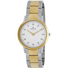 Relógio Oslo Feminino Ref: Oftsss9t0066 B2sk Slim Bicolor DESCRIÇÃO DO PRODUTO: Caixa: Aço Pulseira: Aço Diâmetro da caixa: 32MM Altura da caixa: 7MM Vidro: Safira Resistência à água: 30m Funções: Analogico, Slim Fundo: Pressão Alimentação do Maquinário: Bateria Mostrador Branco com Todos os Números Prateado com Dourado
