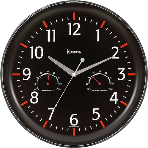 Relógio Parede 35cm Preto Termômetro Higrômetro Herweg 6812
