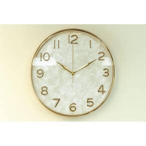 Tamanho: 37 cm de diâmetro Formato: Redondo clássico Acabamento: Borda dourada metálica com brilho refinado Mostrador: Textura madrepérola que reflete a luz com suavidade Números: Grandes, dourados e de fácil leitura Estilo: Luxuoso e versátil combina com salas, escritórios, quartos e ambientes sofisticados