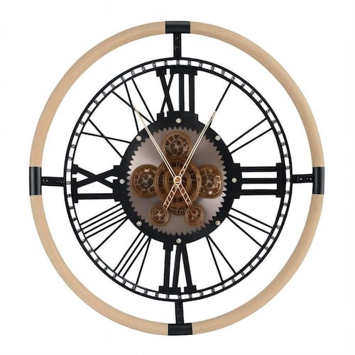 Transforme qualquer ambiente com este relógio de parede sofisticado e cheio de personalidade Com 60cm de diâmetro, ele combina o charme rústico da madeira com a robustez do metal em um design steampunk moderno.