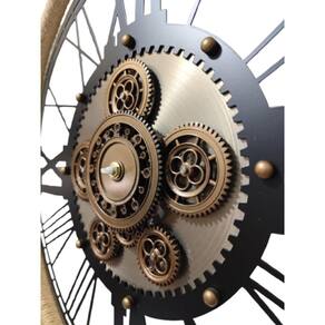 Dimensões: 60cm de diâmetro Funcionamento: Pilha AA não inclusa Estilo: Industrial / Steampunk / Rústico Moderno