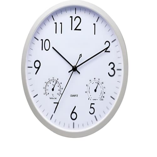 Funcionalidade Adicional: Além de manter o tempo, este relógio também possui um termômetro e um higrômetro integrados, permitindo que você monitore a temperatura e a umidade do ambiente. Fácil de Instalar e Manter: Requer apenas uma pilha AA de 1,5V (não incluída) para funcionar e pode ser facilmente pendurado na parede. Dimensões Convenientes: Com dimensões de 30 cm x 4,5 cm, este relógio tem o tamanho ideal para se destacar na parede sem ocupar muito espaço.