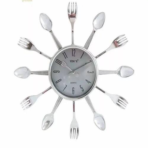 Design Temático e Elegante: Estilo único com garfos e colheres, tornando o relógio uma verdadeira peça decorativa. Dimensões: Diâmetro total: 32 cm. Diâmetro da parte de vidro central: 12 cm. Funcionamento Simples e Eficiente: Utiliza apenas 1 pilha tipo AA (não inclusa). Material de Qualidade: Estrutura de plástico resistente e acabamento cromado, garantindo durabilidade e beleza.