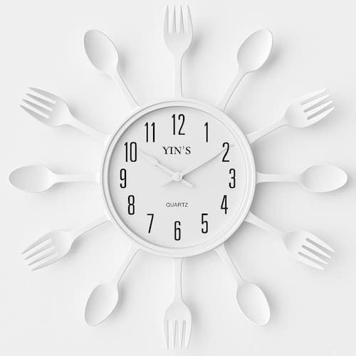 Design Temático e Elegante: Estilo único com garfos e colheres, tornando o relógio uma verdadeira peça decorativa.