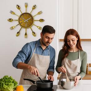 Relógio Parede Decorativo Cozinha Estilo Retrô Talheres Design Elegante Moderno Dourado Luxo Relógio de Parede - Design de Talheres (Garfo e Colher) Leve sofisticação e estilo à sua cozinha com este exclusivo relógio de parede, perfeito para quem valoriza detalhes e funcionalidade. Inspirado no universo gastronômico, ele combina charme e praticidade, tornando-se um item indispensável para amantes da boa culinária e decoração moderna.Destaques do Produto: