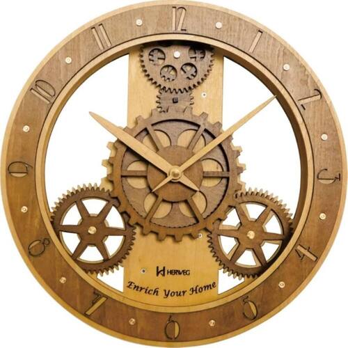 Relogio Parede Engrenagens Herweg Madeira Carvalho 30Cm 6486