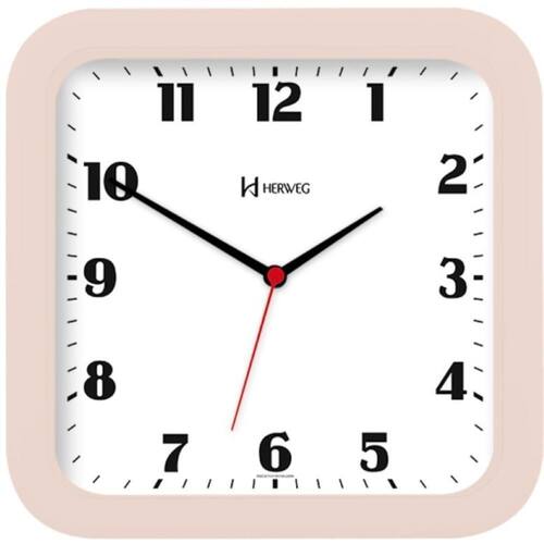 Relógio De Parede Herweg Ref: 6145-131 Retangular Marrom Areia DESCRIÇÃO DO PRODUTO: Medidas: 23L x 23A x 4E cm Características Técnicas: Usa pilha AA Mecanismo Step Tic-Tac Produto Nacional Informações sobre o produto: Relógio de parede Base em Plástico Injetado Botões de regulagem na parte traseira do produto Cor da Base: Marrom Areia Cor do Mostrador: Branco com números de 1 ano